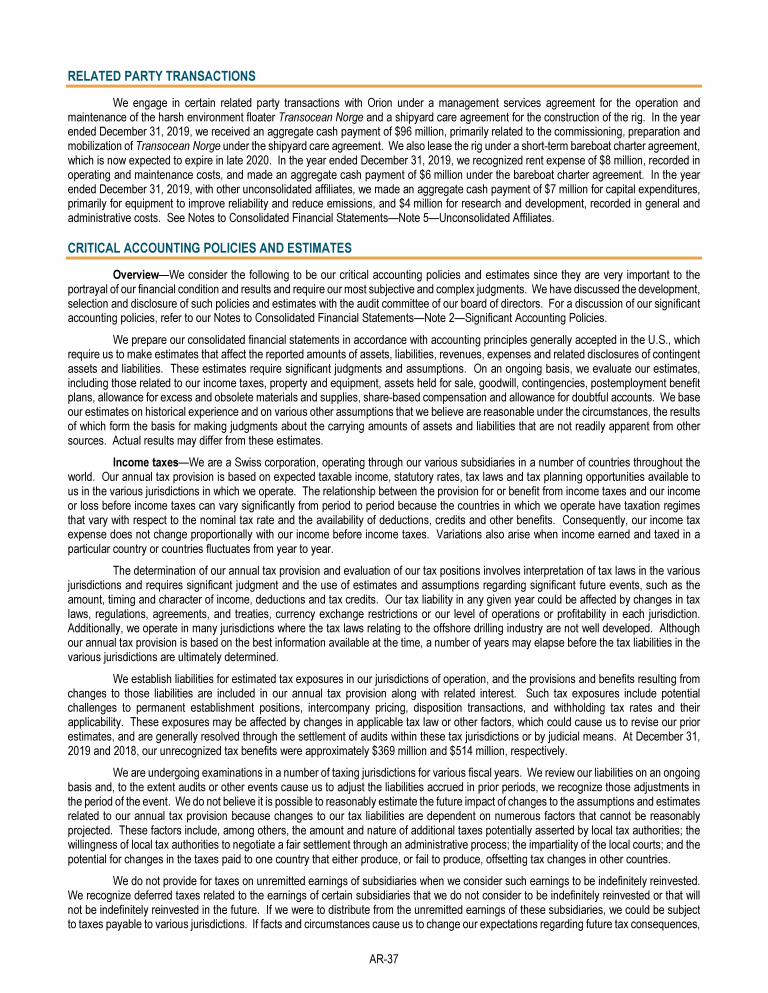 Agenda Item 1. Approval of the 2019 Annual Report, Including the Audited Consolidated Financial Statements of Transocean Ltd. for Fiscal Year 2019 and the Audited Statutory Financial Statements of Transocean Ltd. for Fiscal Year 2019