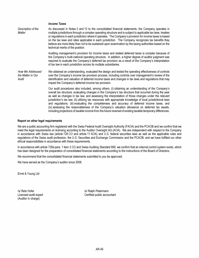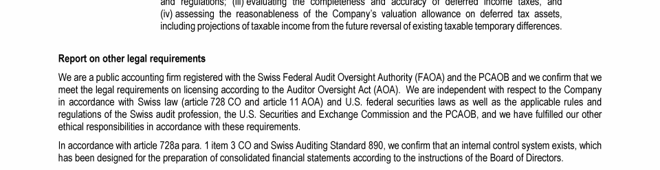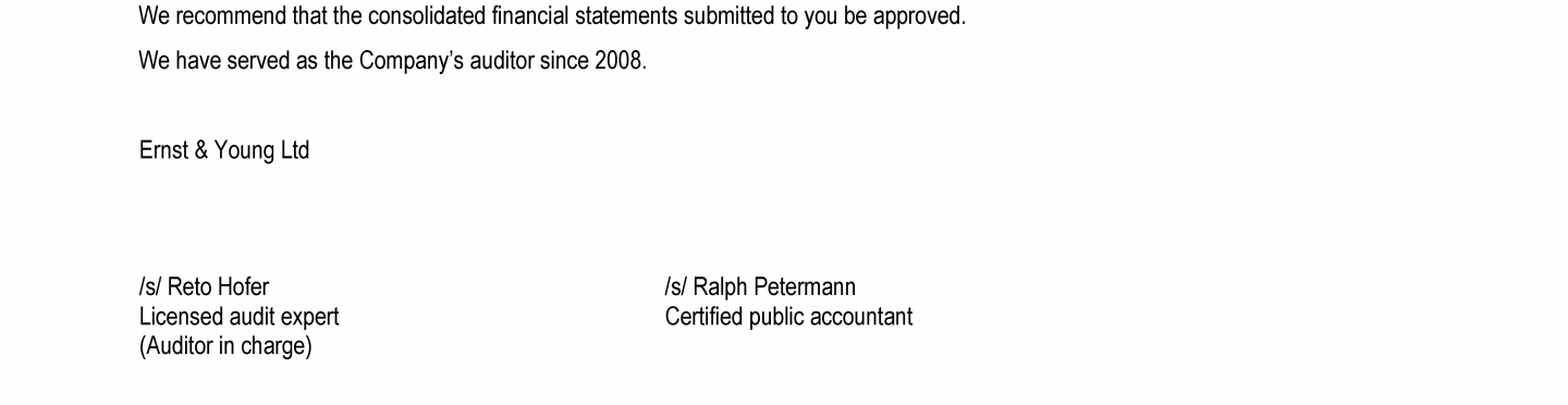 Agenda Item 9. Appointment of Ernst & Young LLP as the Company's Independent Registered Public Accounting Firm for Fiscal Year 2020 and Reelection of Ernst & Young Ltd, Zurich, as the Company's Auditor for a Further One-Year Term
