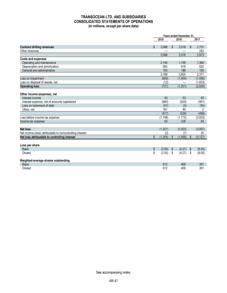 Agenda Item 1. Approval of the 2019 Annual Report, Including the Audited Consolidated Financial Statements of Transocean Ltd. for Fiscal Year 2019 and the Audited Statutory Financial Statements of Transocean Ltd. for Fiscal Year 2019