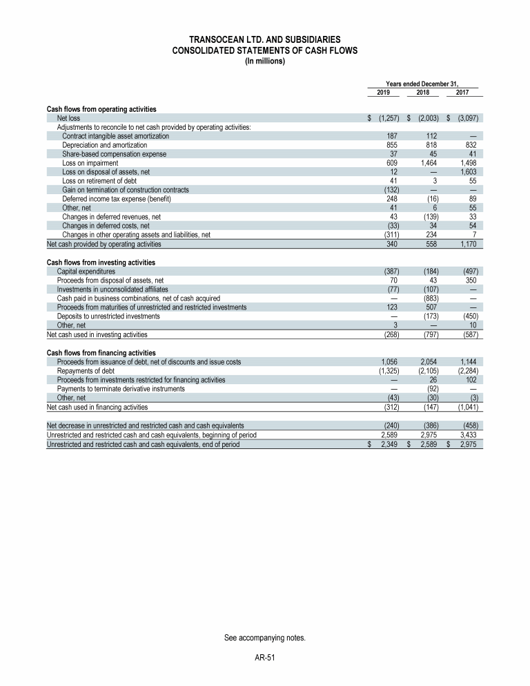 Agenda Item 1. Approval of the 2019 Annual Report, Including the Audited Consolidated Financial Statements of Transocean Ltd. for Fiscal Year 2019 and the Audited Statutory Financial Statements of Transocean Ltd. for Fiscal Year 2019