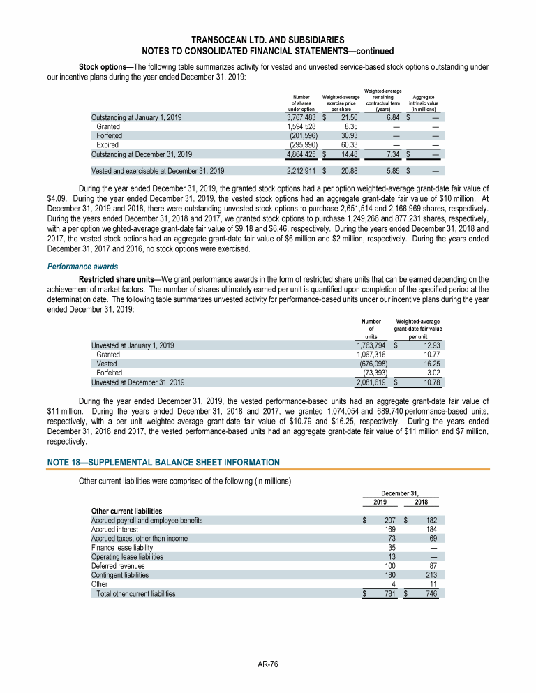 Agenda Item 1. Approval of the 2019 Annual Report, Including the Audited Consolidated Financial Statements of Transocean Ltd. for Fiscal Year 2019 and the Audited Statutory Financial Statements of Transocean Ltd. for Fiscal Year 2019