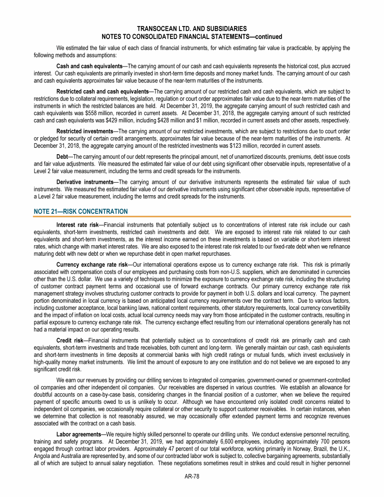 Agenda Item 1. Approval of the 2019 Annual Report, Including the Audited Consolidated Financial Statements of Transocean Ltd. for Fiscal Year 2019 and the Audited Statutory Financial Statements of Transocean Ltd. for Fiscal Year 2019