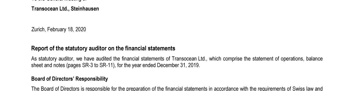 Agenda Item 1. Approval of the 2019 Annual Report, Including the Audited Consolidated Financial Statements of Transocean Ltd. for Fiscal Year 2019 and the Audited Statutory Financial Statements of Transocean Ltd. for Fiscal Year 2019
