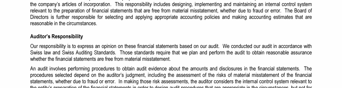 Report of the Statutory Auditor on the Financial Statements