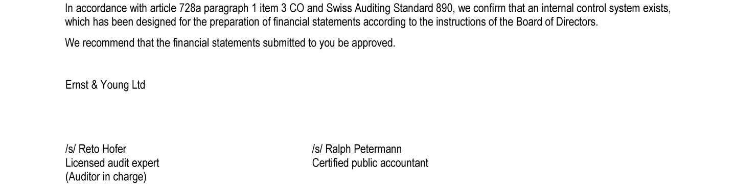 Agenda Item 9. Appointment of Ernst & Young LLP as the Company's Independent Registered Public Accounting Firm for Fiscal Year 2020 and Reelection of Ernst & Young Ltd, Zurich, as the Company's Auditor for a Further One-Year Term