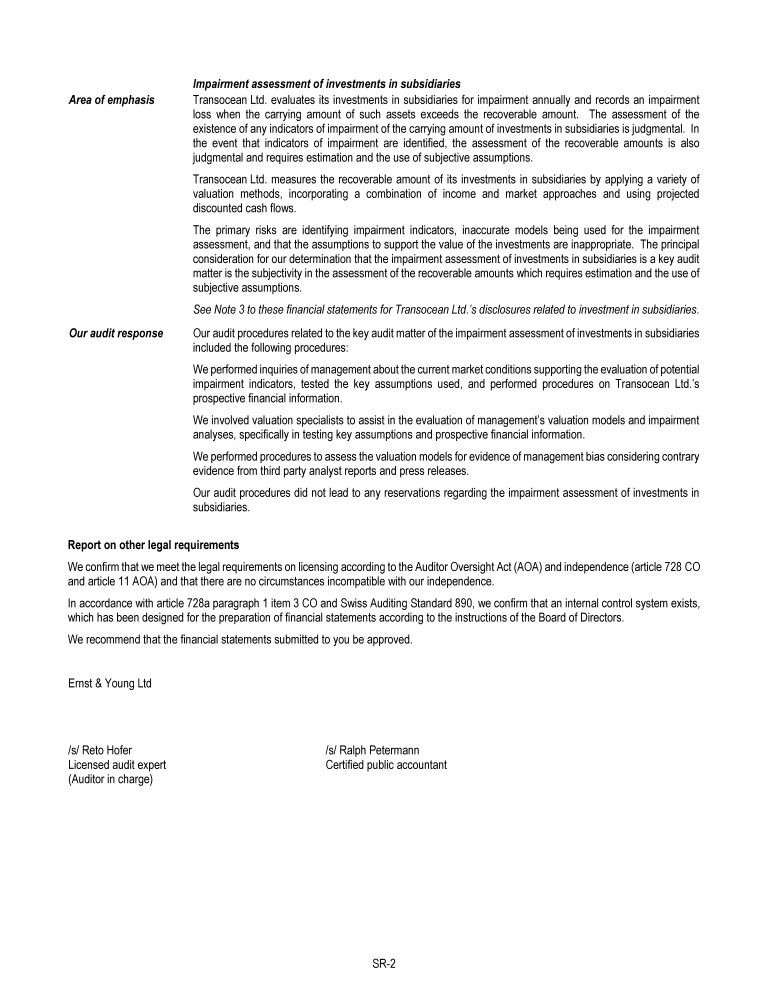 Agenda Item 1. Approval of the 2019 Annual Report, Including the Audited Consolidated Financial Statements of Transocean Ltd. for Fiscal Year 2019 and the Audited Statutory Financial Statements of Transocean Ltd. for Fiscal Year 2019