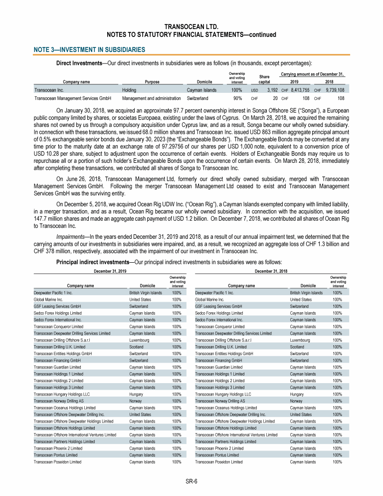 Agenda Item 1. Approval of the 2019 Annual Report, Including the Audited Consolidated Financial Statements of Transocean Ltd. for Fiscal Year 2019 and the Audited Statutory Financial Statements of Transocean Ltd. for Fiscal Year 2019
