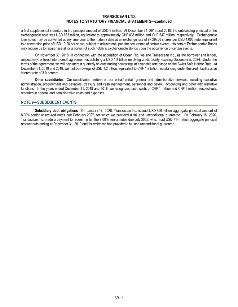 Agenda Item 1. Approval of the 2019 Annual Report, Including the Audited Consolidated Financial Statements of Transocean Ltd. for Fiscal Year 2019 and the Audited Statutory Financial Statements of Transocean Ltd. for Fiscal Year 2019