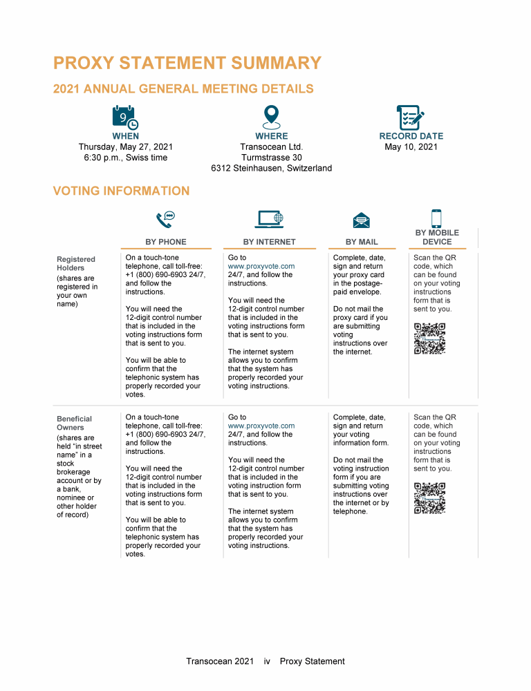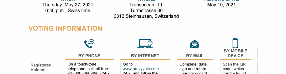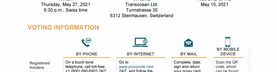 Invitation to 2021 Annual General Meeting of Transocean Ltd.