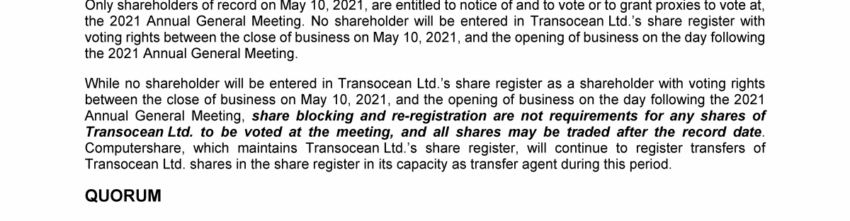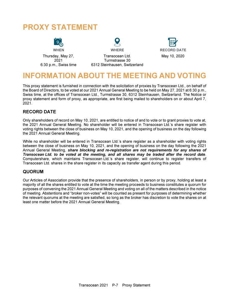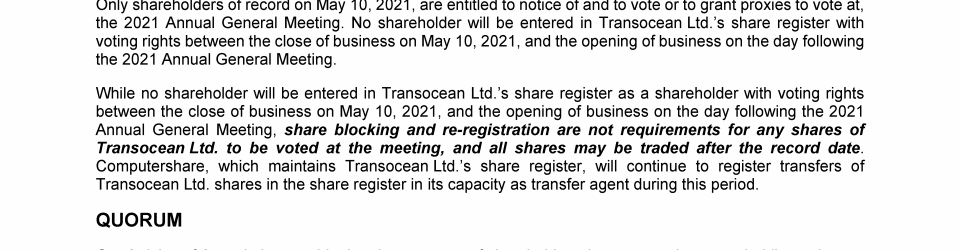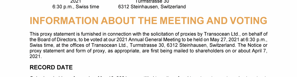 Invitation to 2021 Annual General Meeting of Transocean Ltd.