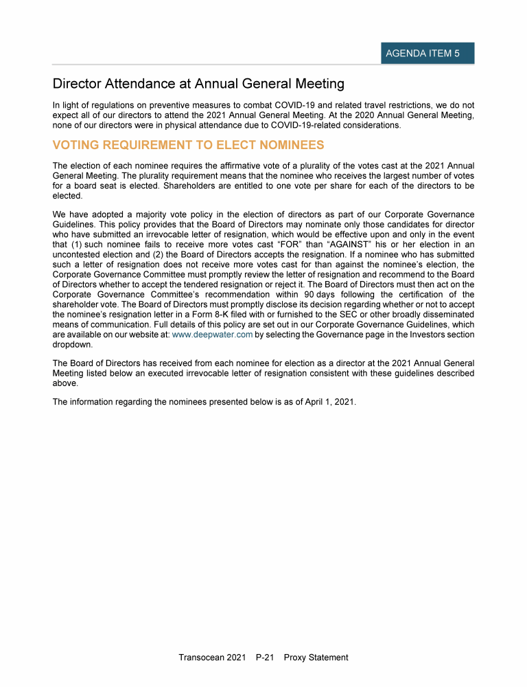 Invitation to 2021 Annual General Meeting of Transocean Ltd.