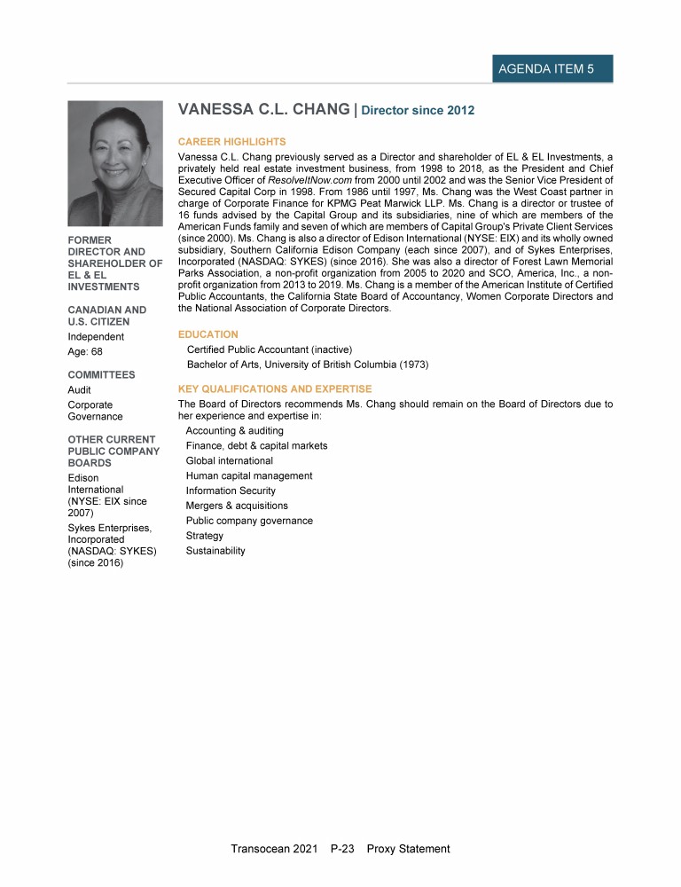 Agenda Item 1. Approval of the 2020 Annual Report, Including the Audited Consolidated Financial Statements of Transocean Ltd. for Fiscal Year 2020 and the Audited Statutory Financial Statements of Transocean Ltd. for Fiscal Year 2020