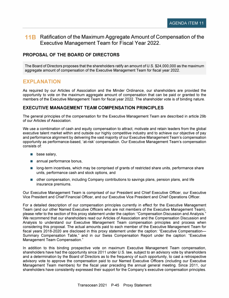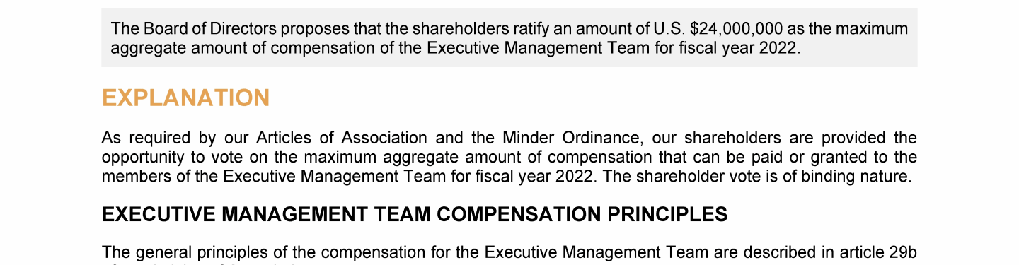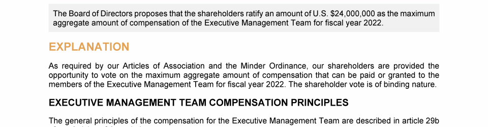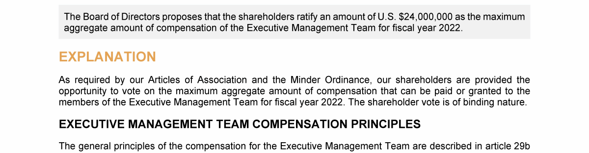 Agenda Item 11. Prospective Votes on the Maximum Compensation of the Board of Directors and the Executive Management Team