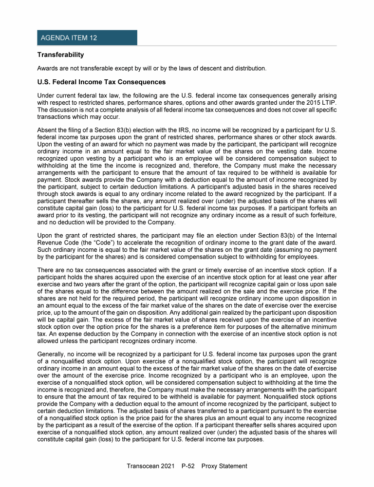 Agenda Item 12. Approval of Amendment and Restatement of the Transocean Ltd. 2015 Long-Term Incentive Plan