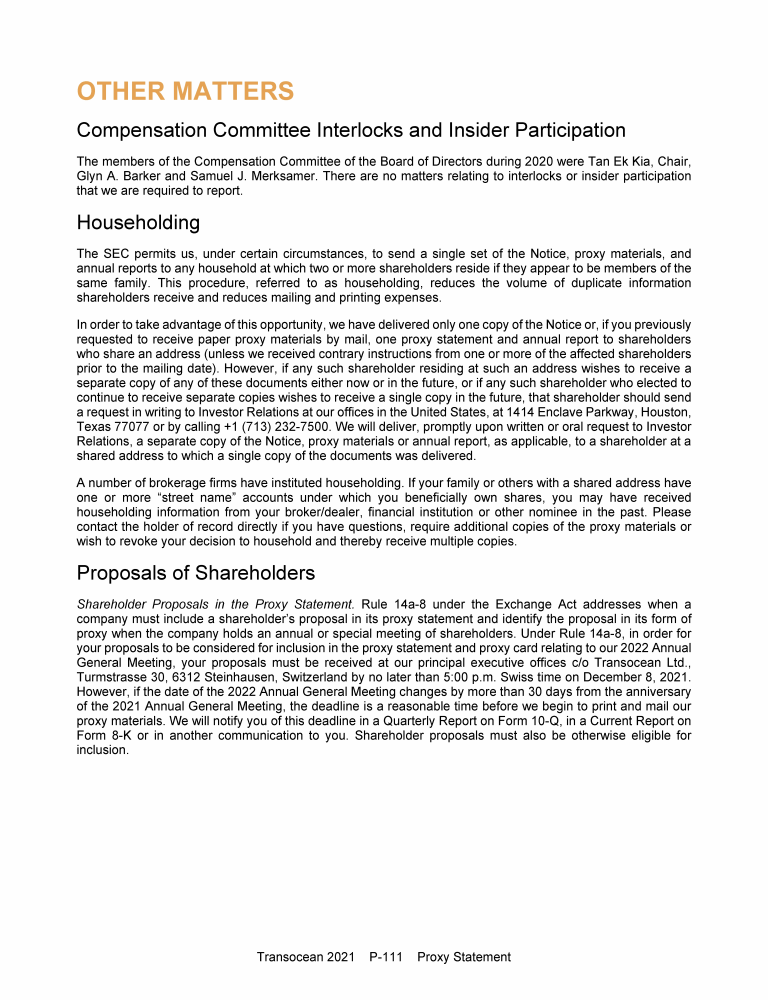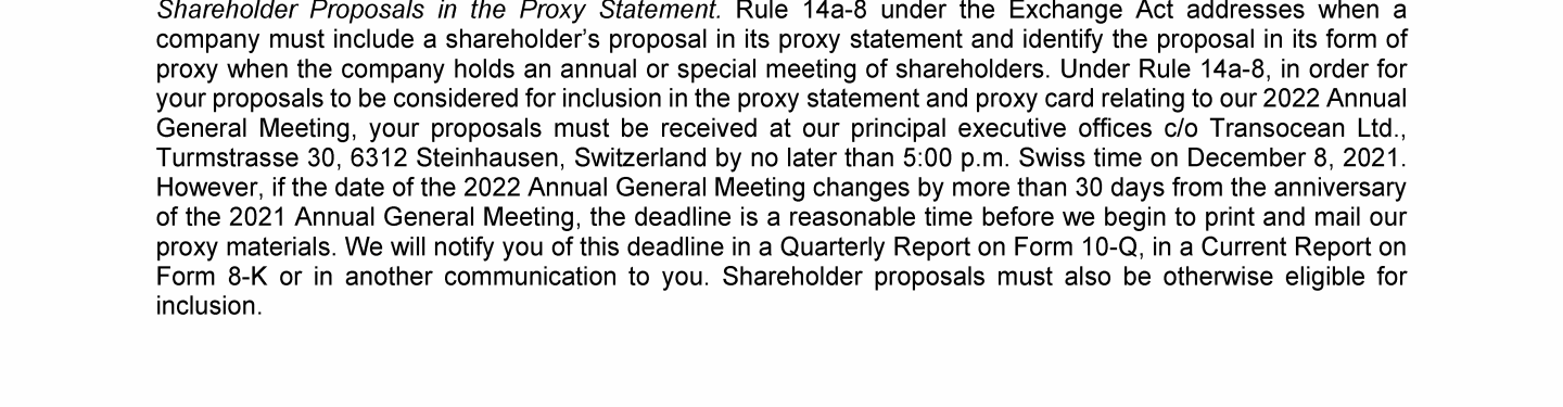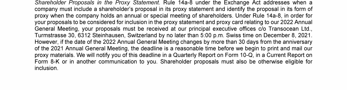 Invitation to 2021 Annual General Meeting of Transocean Ltd.