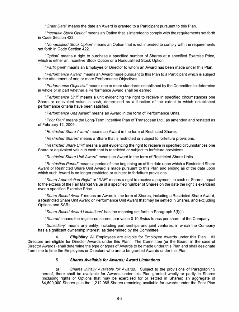 Appendix B - Proposed Amendment of Transocean Ltd. 2015 Long-Term Incentive Plan