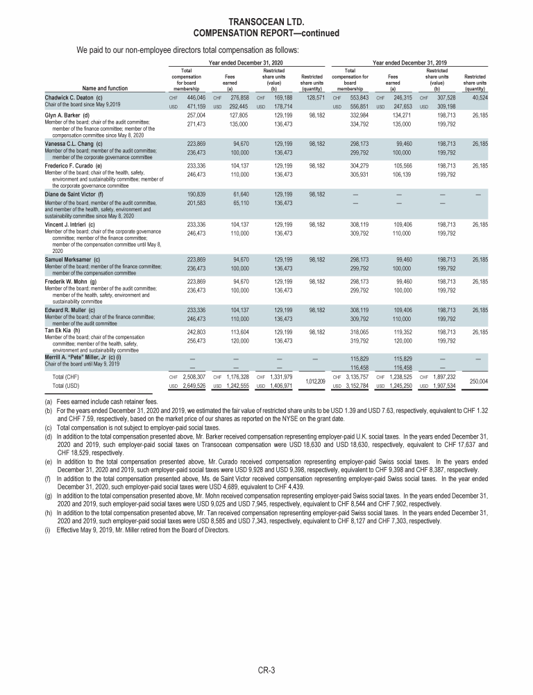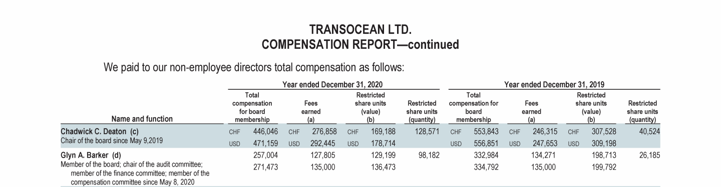 Agenda Item 1. Approval of the 2020 Annual Report, Including the Audited Consolidated Financial Statements of Transocean Ltd. for Fiscal Year 2020 and the Audited Statutory Financial Statements of Transocean Ltd. for Fiscal Year 2020