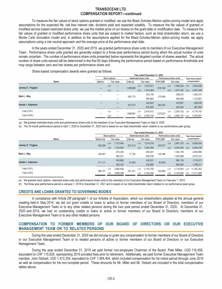 Agenda Item 1. Approval of the 2020 Annual Report, Including the Audited Consolidated Financial Statements of Transocean Ltd. for Fiscal Year 2020 and the Audited Statutory Financial Statements of Transocean Ltd. for Fiscal Year 2020