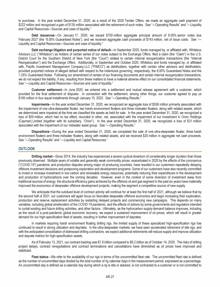 Agenda Item 1. Approval of the 2020 Annual Report, Including the Audited Consolidated Financial Statements of Transocean Ltd. for Fiscal Year 2020 and the Audited Statutory Financial Statements of Transocean Ltd. for Fiscal Year 2020