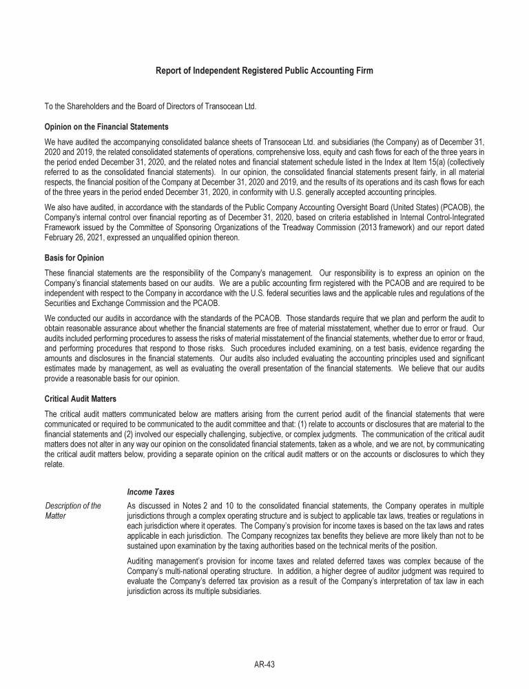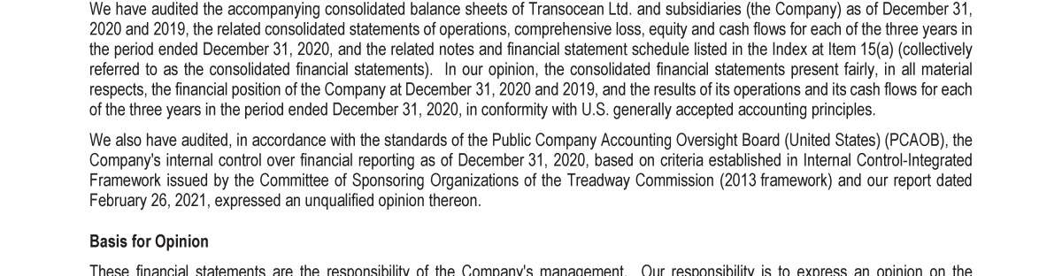 Agenda Item 1. Approval of the 2020 Annual Report, Including the Audited Consolidated Financial Statements of Transocean Ltd. for Fiscal Year 2020 and the Audited Statutory Financial Statements of Transocean Ltd. for Fiscal Year 2020