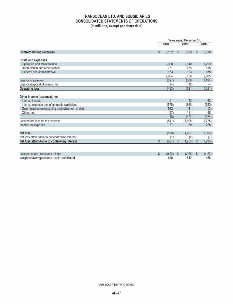 Agenda Item 1. Approval of the 2020 Annual Report, Including the Audited Consolidated Financial Statements of Transocean Ltd. for Fiscal Year 2020 and the Audited Statutory Financial Statements of Transocean Ltd. for Fiscal Year 2020