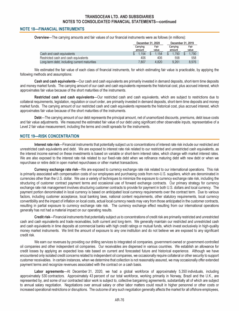Agenda Item 1. Approval of the 2020 Annual Report, Including the Audited Consolidated Financial Statements of Transocean Ltd. for Fiscal Year 2020 and the Audited Statutory Financial Statements of Transocean Ltd. for Fiscal Year 2020