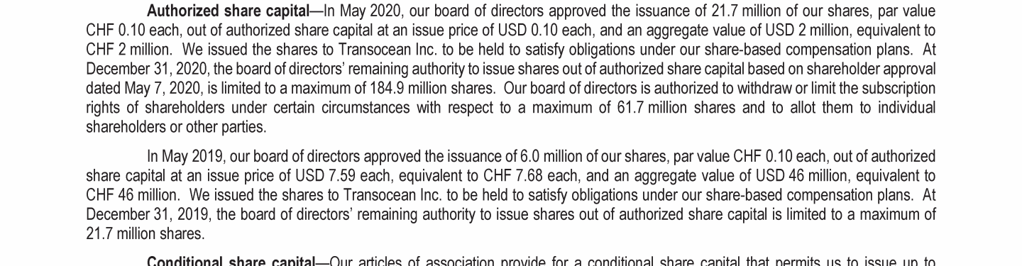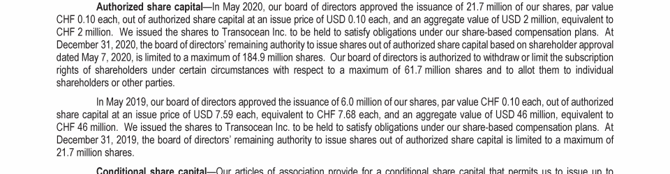 Invitation to 2021 Annual General Meeting of Transocean Ltd.