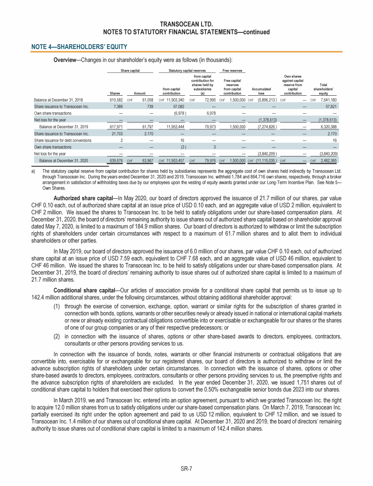Agenda Item 1. Approval of the 2020 Annual Report, Including the Audited Consolidated Financial Statements of Transocean Ltd. for Fiscal Year 2020 and the Audited Statutory Financial Statements of Transocean Ltd. for Fiscal Year 2020