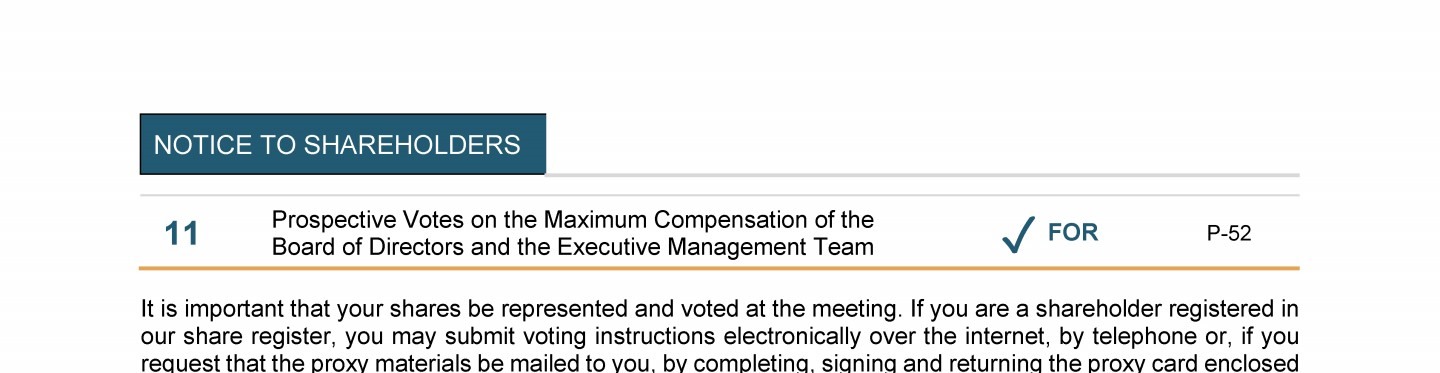 Agenda Item 11. Prospective Votes on the Maximum Compensation of the Board of Directors and the Executive Management Team