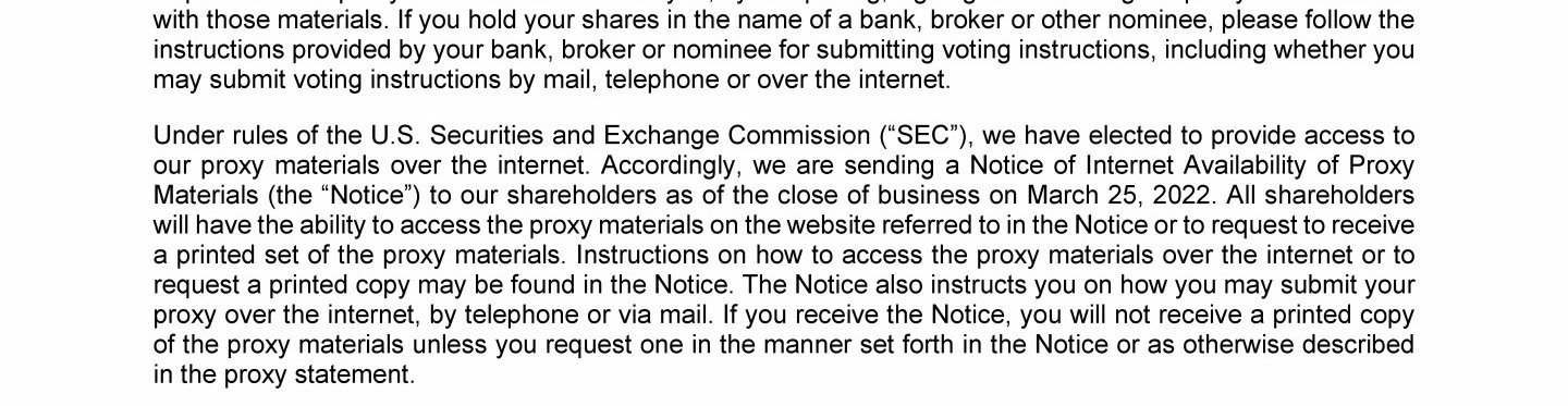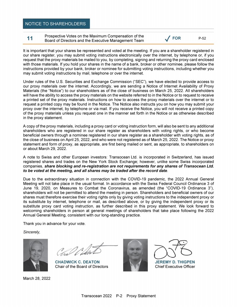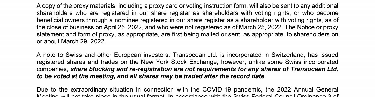 Invitation to 2022 Annual General Meeting of Transocean Ltd.