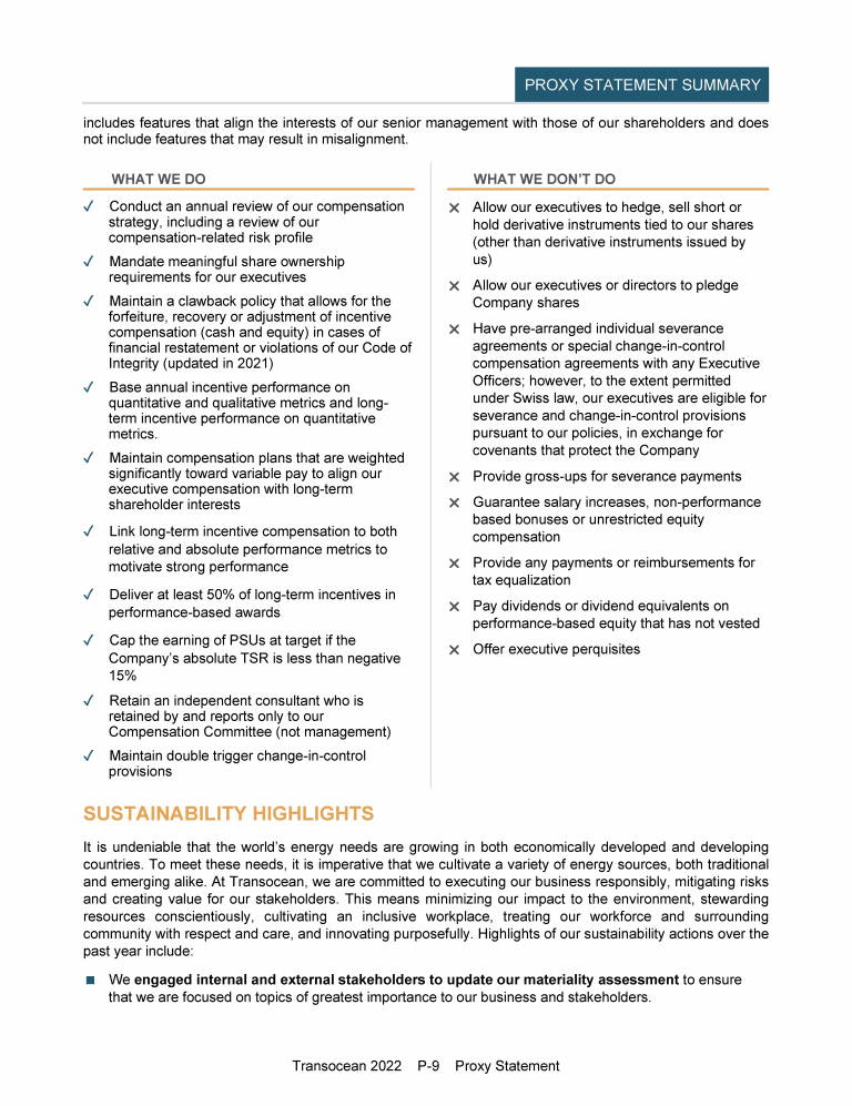 Invitation to 2022 Annual General Meeting of Transocean Ltd.