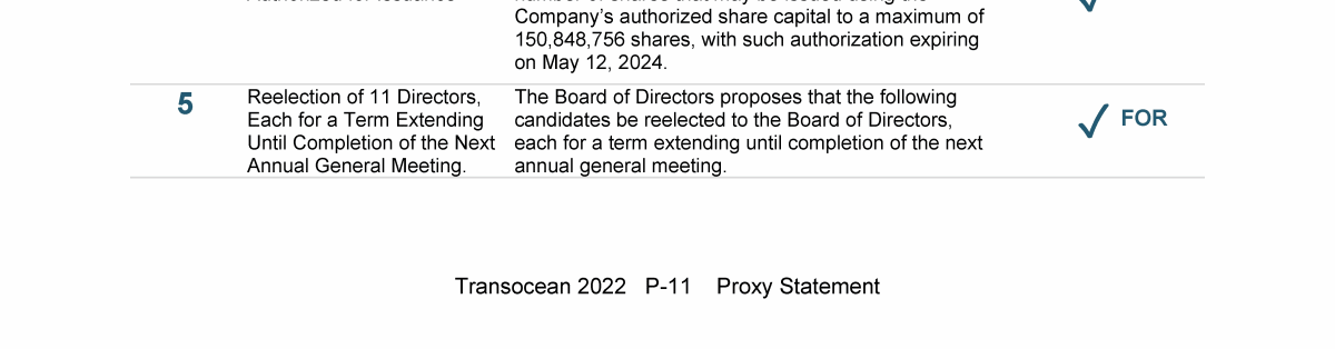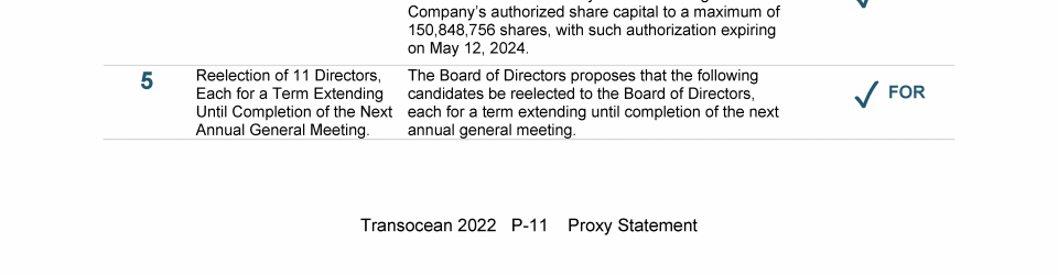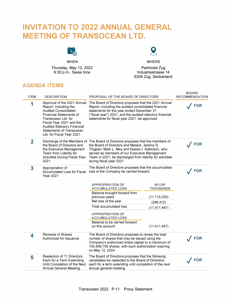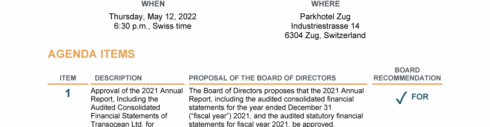 Invitation to 2022 Annual General Meeting of Transocean Ltd.