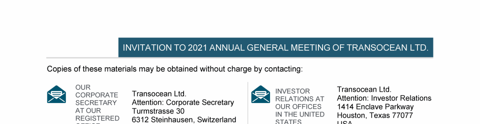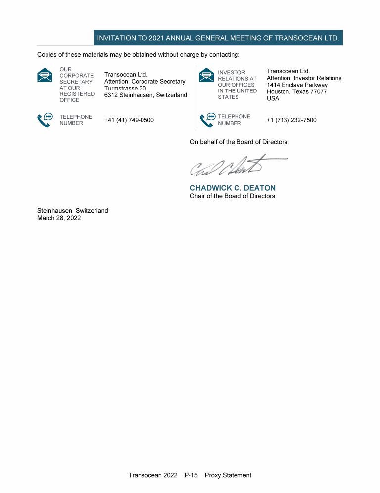 Invitation to 2022 Annual General Meeting of Transocean Ltd.