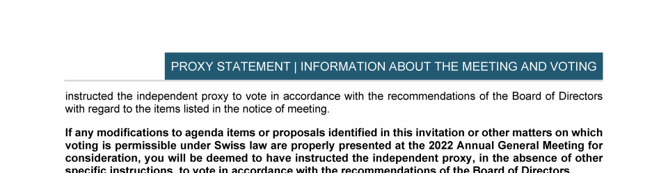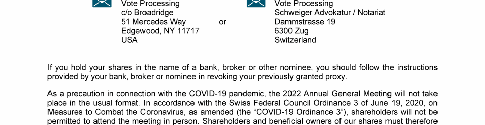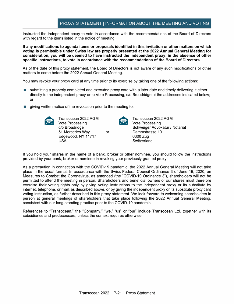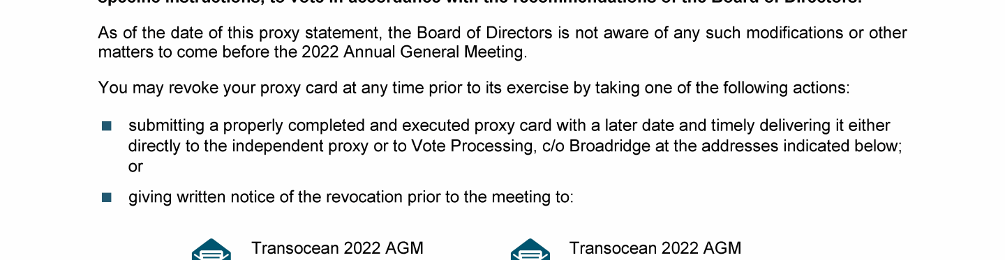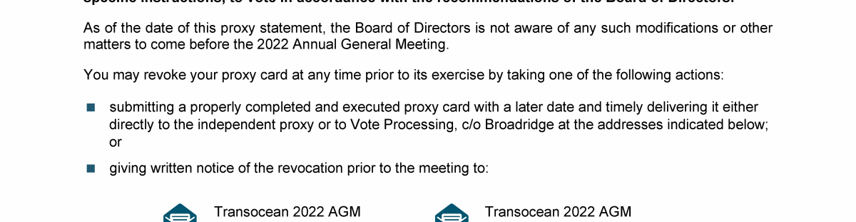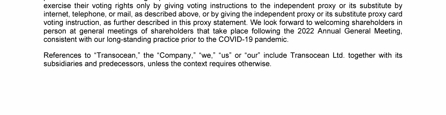 Invitation to 2022 Annual General Meeting of Transocean Ltd.