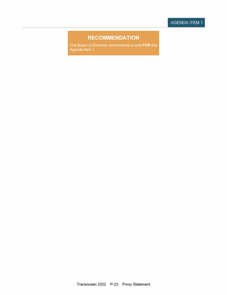Agenda Item 1. Approval of the 2021 Annual Report, Including the Audited Consolidated Financial Statements of Transocean Ltd. for Fiscal Year 2021 and the Audited Statutory Financial Statements of Transocean Ltd. for Fiscal Year 2021