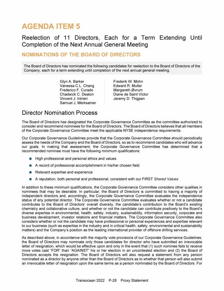 Invitation to 2022 Annual General Meeting of Transocean Ltd.