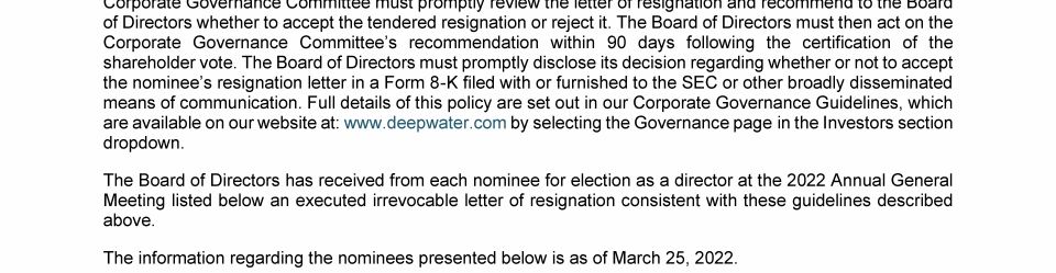 Invitation to 2022 Annual General Meeting of Transocean Ltd.