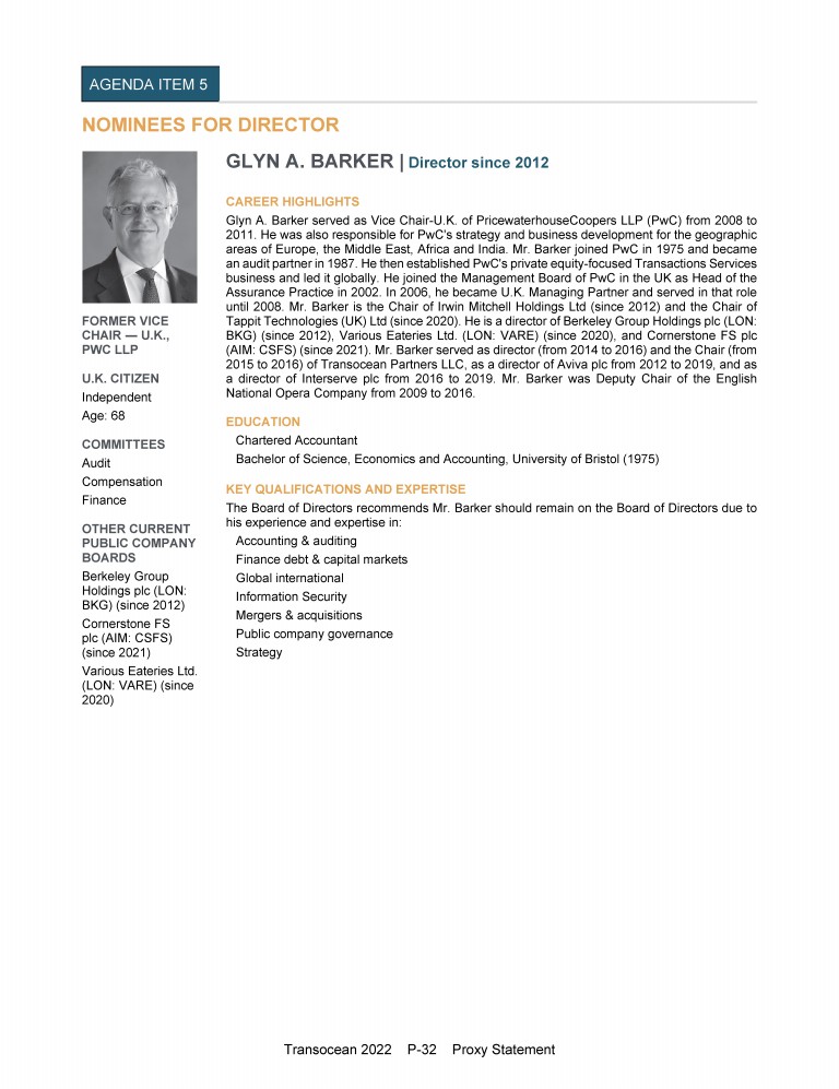 Invitation to 2022 Annual General Meeting of Transocean Ltd.