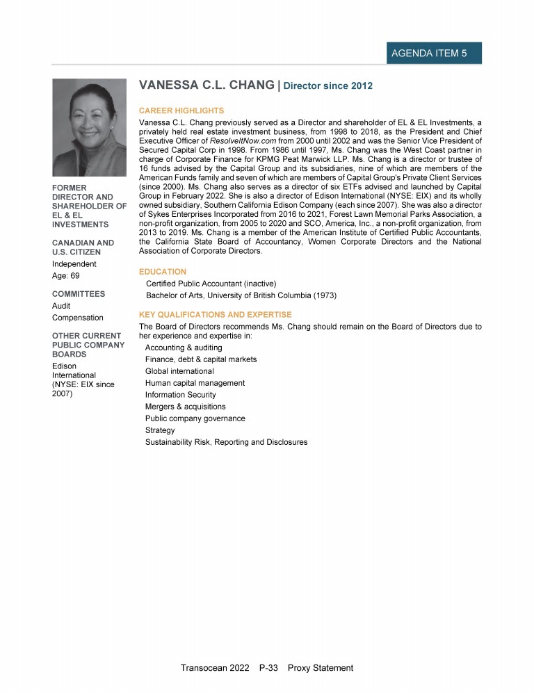 Agenda Item 1. Approval of the 2021 Annual Report, Including the Audited Consolidated Financial Statements of Transocean Ltd. for Fiscal Year 2021 and the Audited Statutory Financial Statements of Transocean Ltd. for Fiscal Year 2021