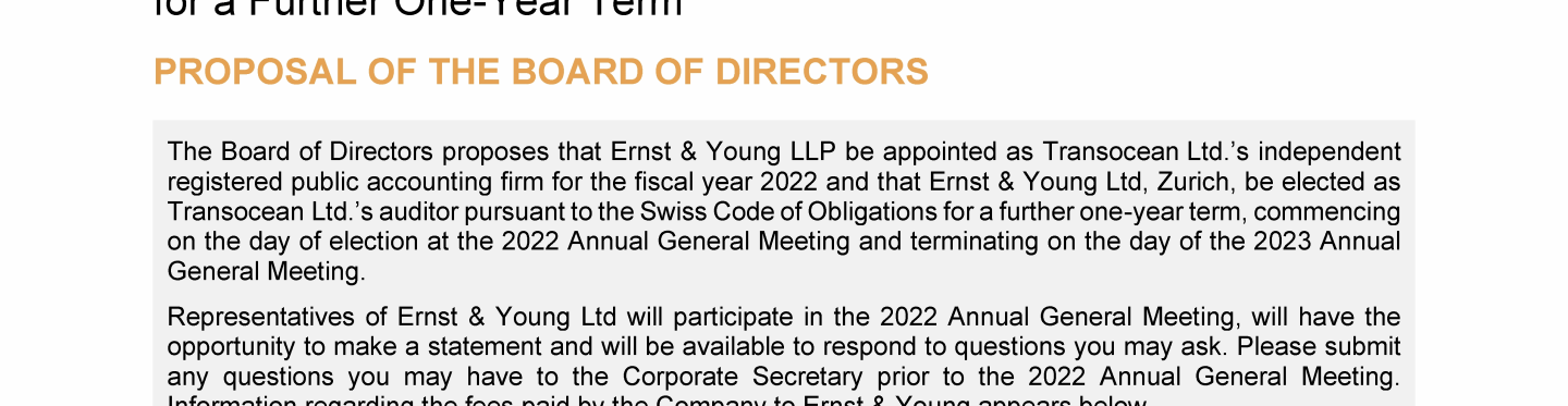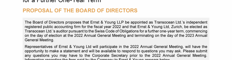 Invitation to 2022 Annual General Meeting of Transocean Ltd.