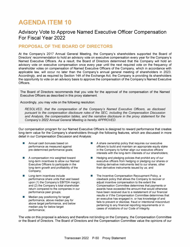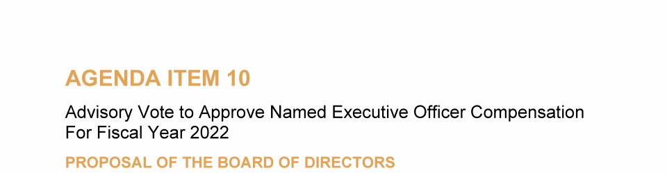 Agenda Item 10. Advisory Vote to Approve Named Executive Officer Compensation for Fiscal Year 2022
