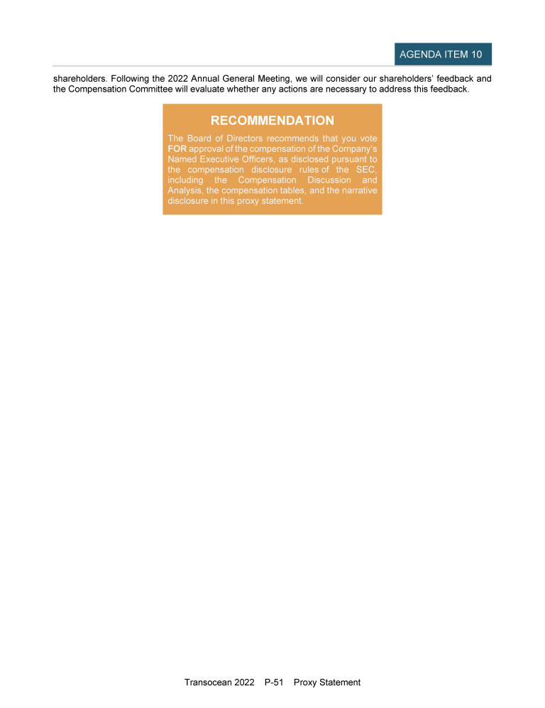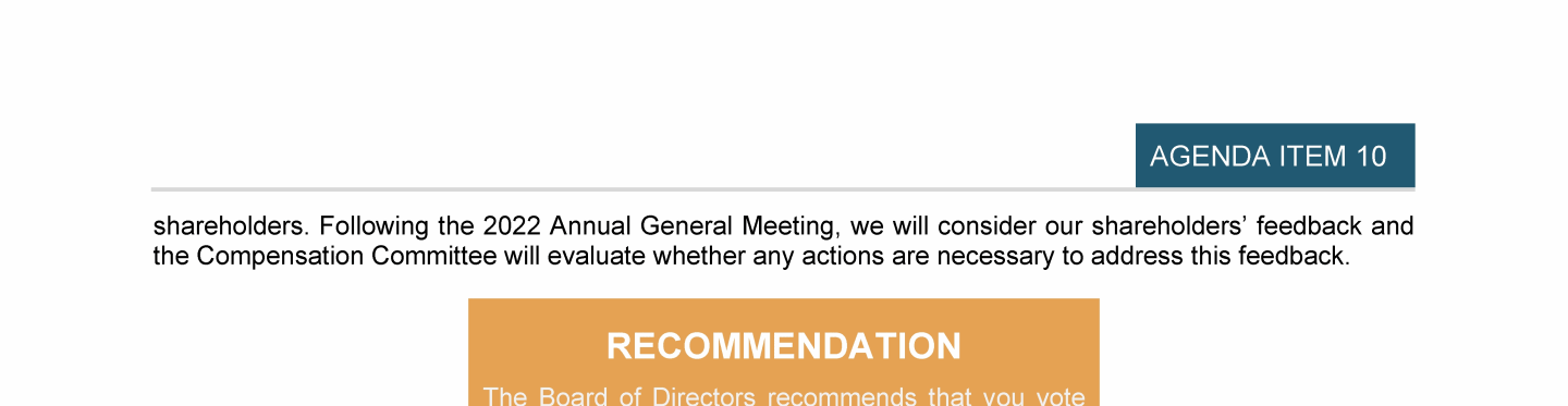 Agenda Item 10. Advisory Vote to Approve Named Executive Officer Compensation for Fiscal Year 2022