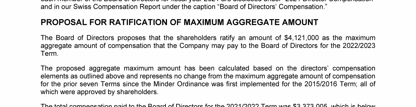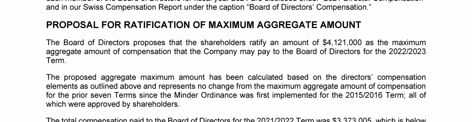 Agenda Item 9. Appointment of Ernst & Young LLP as the Company's Independent Registered Public Accounting Firm for Fiscal Year 2022 and Reelection of Ernst & Young Ltd, Zurich, as the Company's Auditor for a Further One-Year Term