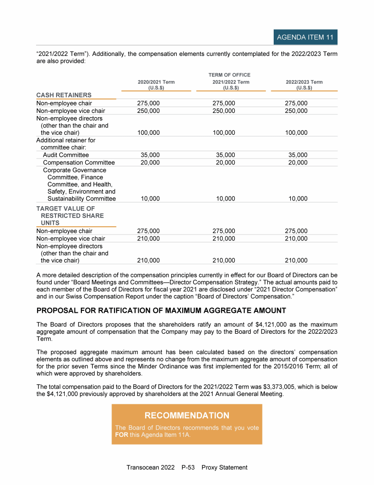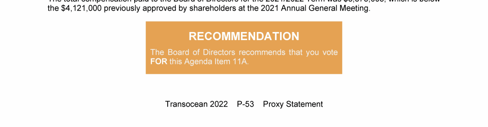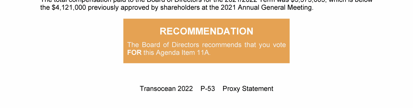 Agenda Item 1. Approval of the 2021 Annual Report, Including the Audited Consolidated Financial Statements of Transocean Ltd. for Fiscal Year 2021 and the Audited Statutory Financial Statements of Transocean Ltd. for Fiscal Year 2021