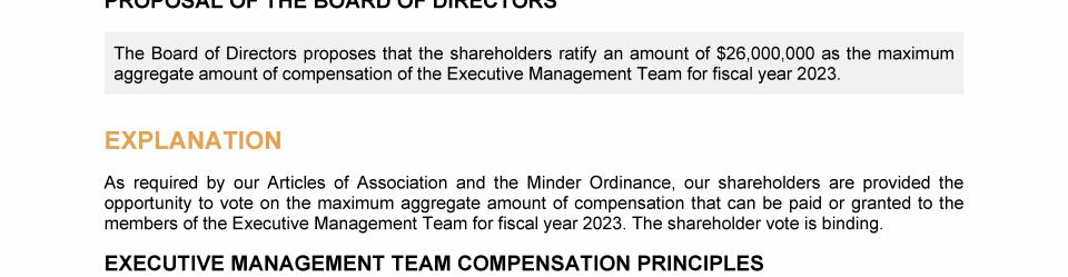 Agenda Item 11. Prospective Votes on the Maximum Compensation of the Board of Directors and the Executive Management Team