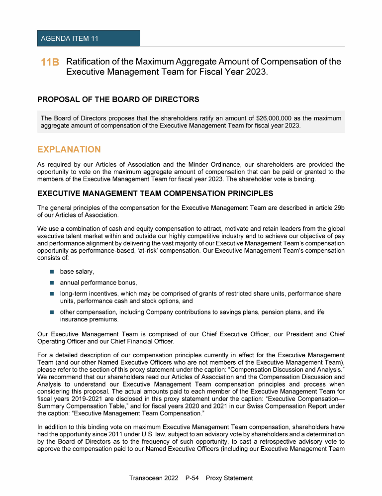 Agenda Item 1. Approval of the 2021 Annual Report, Including the Audited Consolidated Financial Statements of Transocean Ltd. for Fiscal Year 2021 and the Audited Statutory Financial Statements of Transocean Ltd. for Fiscal Year 2021