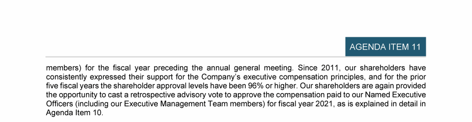 Agenda Item 10. Advisory Vote to Approve Named Executive Officer Compensation for Fiscal Year 2022