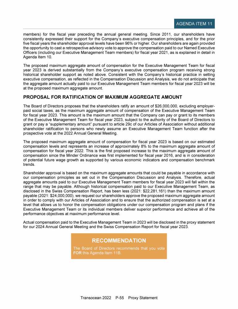 Agenda Item 11. Prospective Votes on the Maximum Compensation of the Board of Directors and the Executive Management Team
