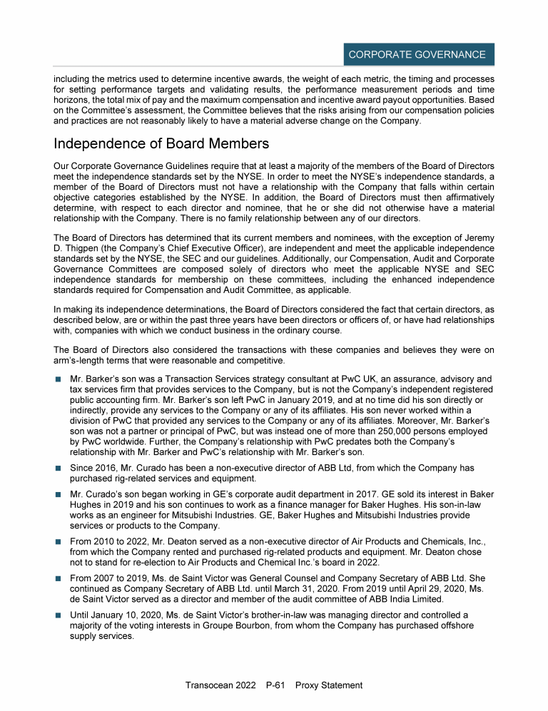 Agenda Item 1. Approval of the 2021 Annual Report, Including the Audited Consolidated Financial Statements of Transocean Ltd. for Fiscal Year 2021 and the Audited Statutory Financial Statements of Transocean Ltd. for Fiscal Year 2021