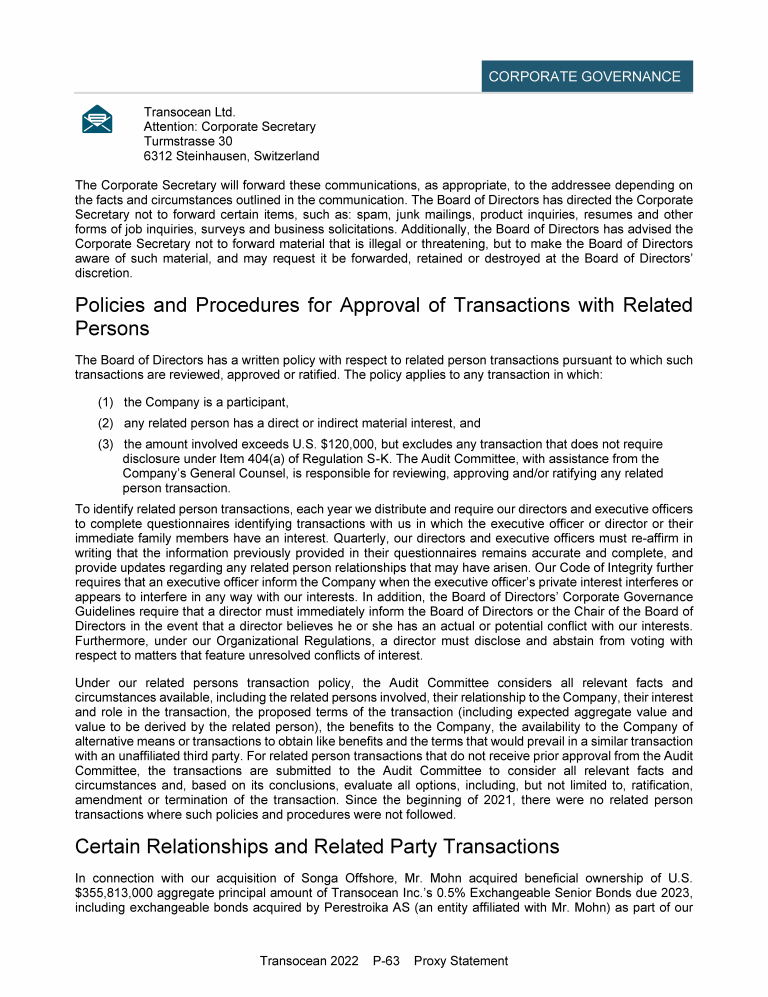 Invitation to 2022 Annual General Meeting of Transocean Ltd.